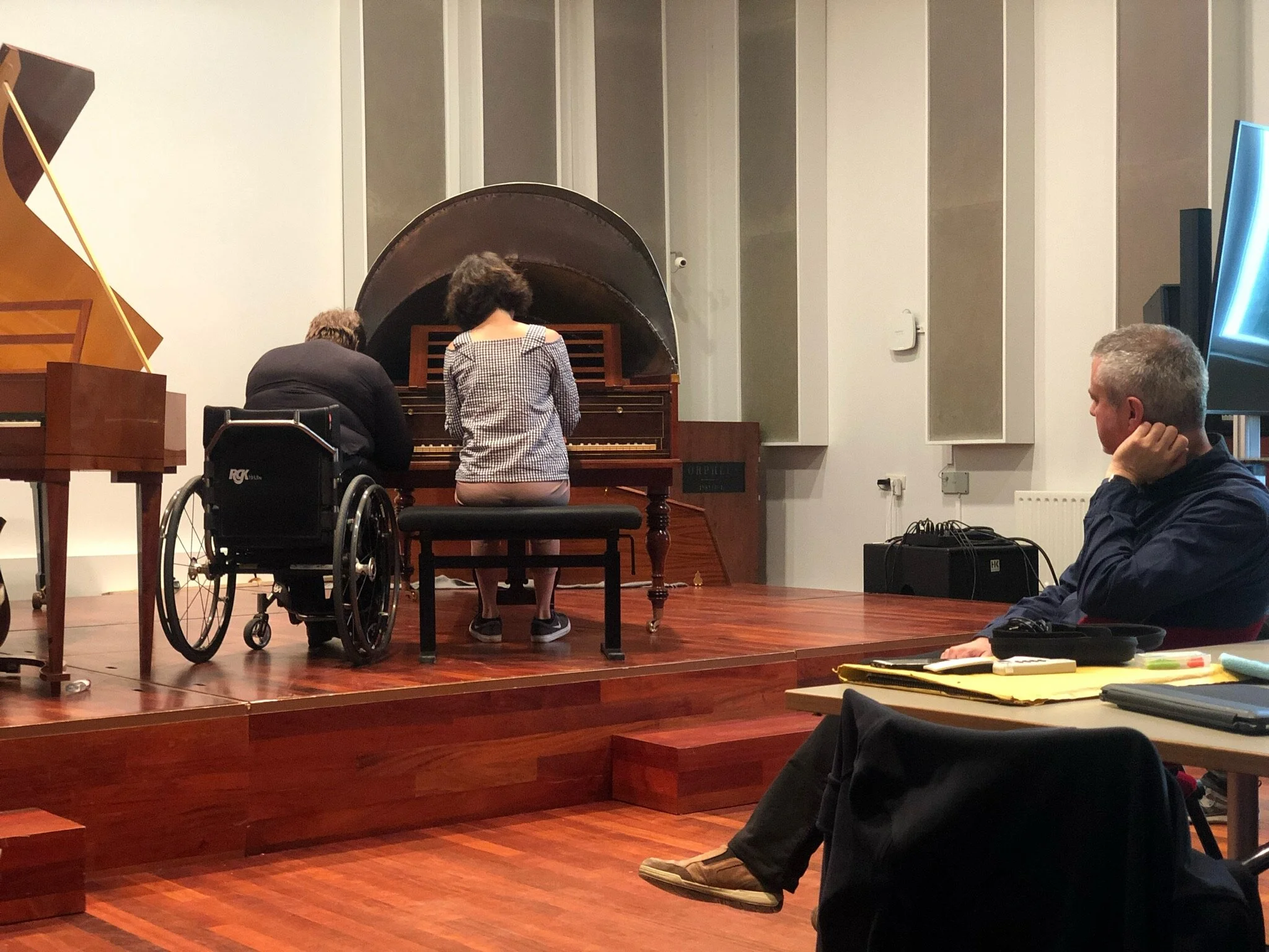 Skip ahead a few days, this initial little test turned into the idea of having me perform the entire Sonata for the concert using Beethoven’s hearing machine as well as wearing earplugs. I was growing more and more fascinated, fueled by the conversations throughout the week on topics around Beethoven’s disability and the questions raised around not just why or what we are playing, but - who is it that we are playing?